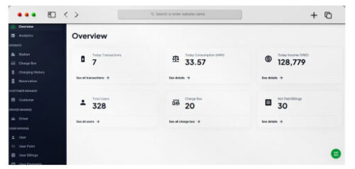 Nền tảng quản lý của Icharge cung cấp các báo cáo chi tiết về tiêu thụ điện, tần suất sạc và doanh thu cho mỗi trạm sạc, cho phép các nhà đầu tư đánh giá hiệu suất của cơ sở hạ tầng sạc.